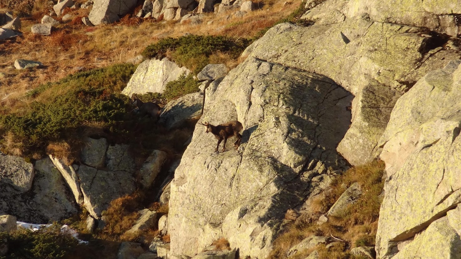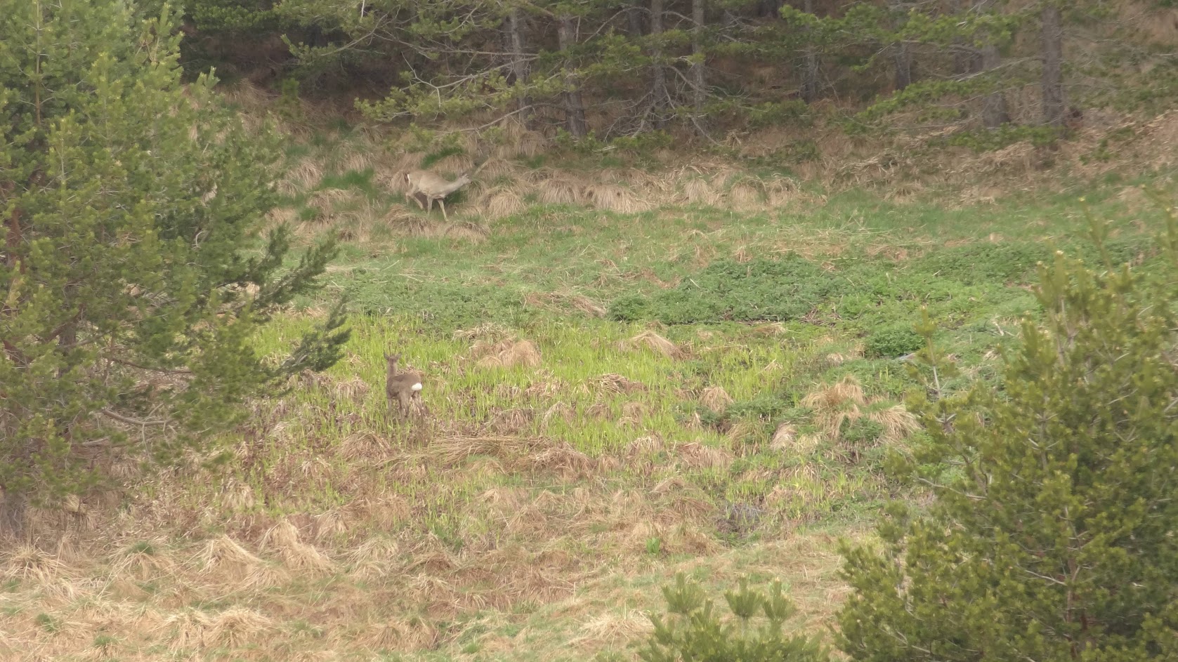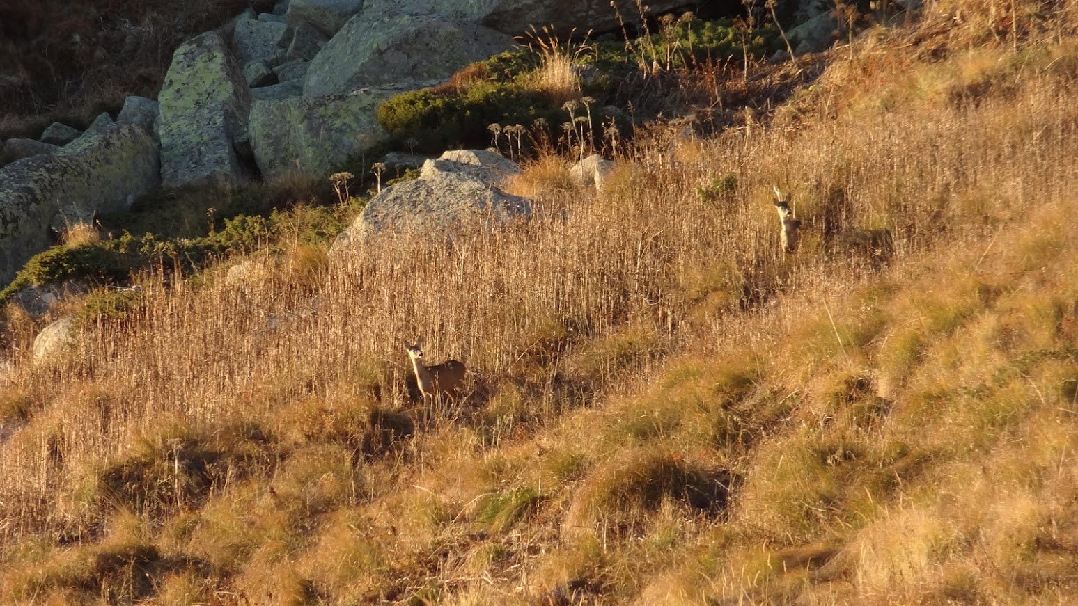 Тъмно си тръгвах надолу от з. Синята стрела и се обърнах да огледам пак наоколо и видях две сърнички на склона от южната страна.