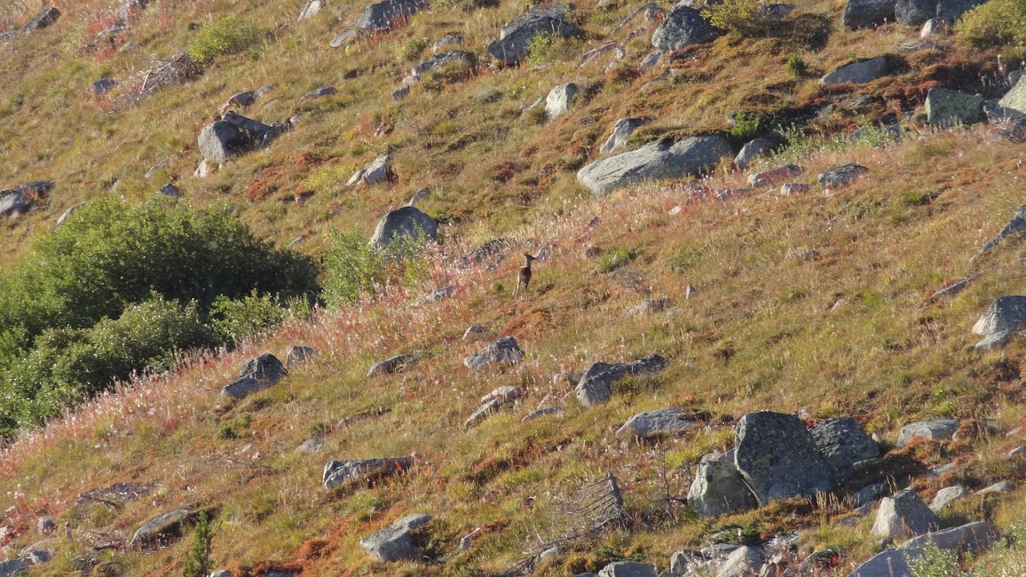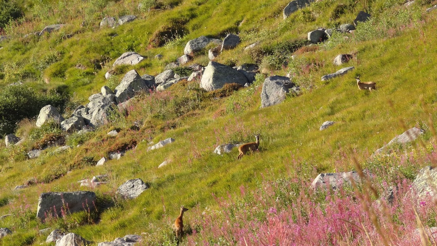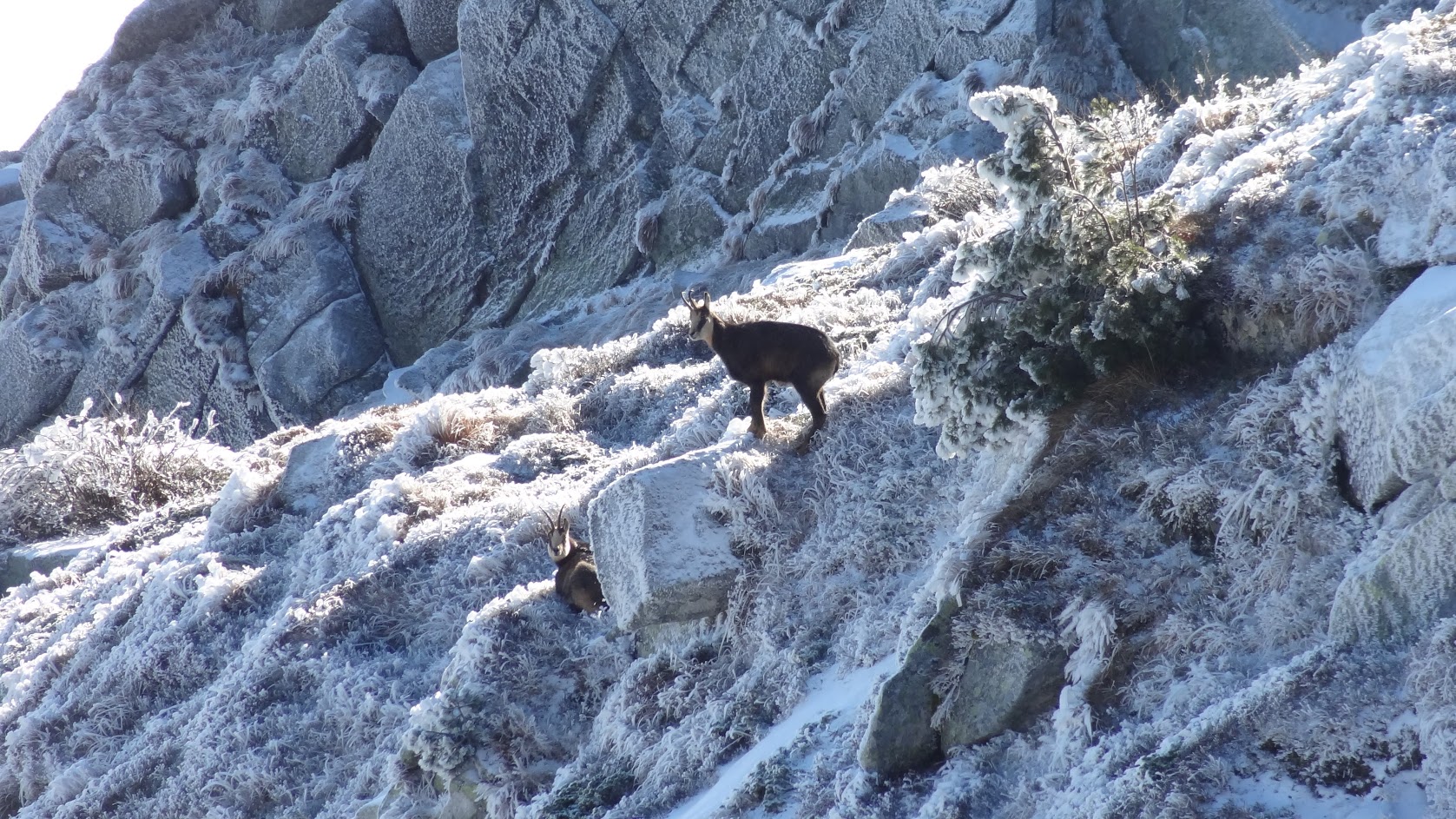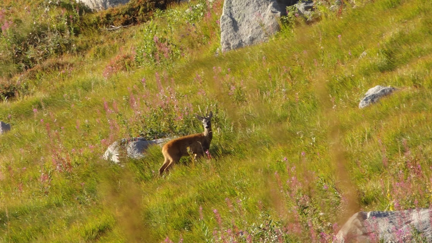 Тъмно си тръгвах надолу от з. Синята стрела и се обърнах да огледам пак наоколо и видях две сърнички на склона от южната страна.