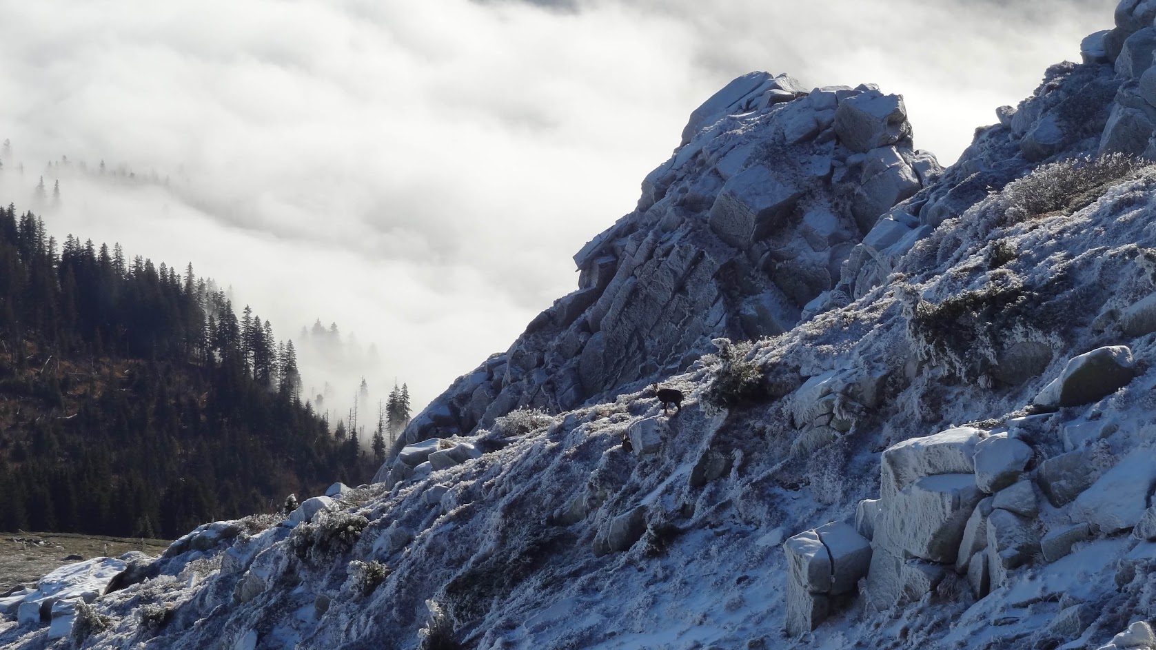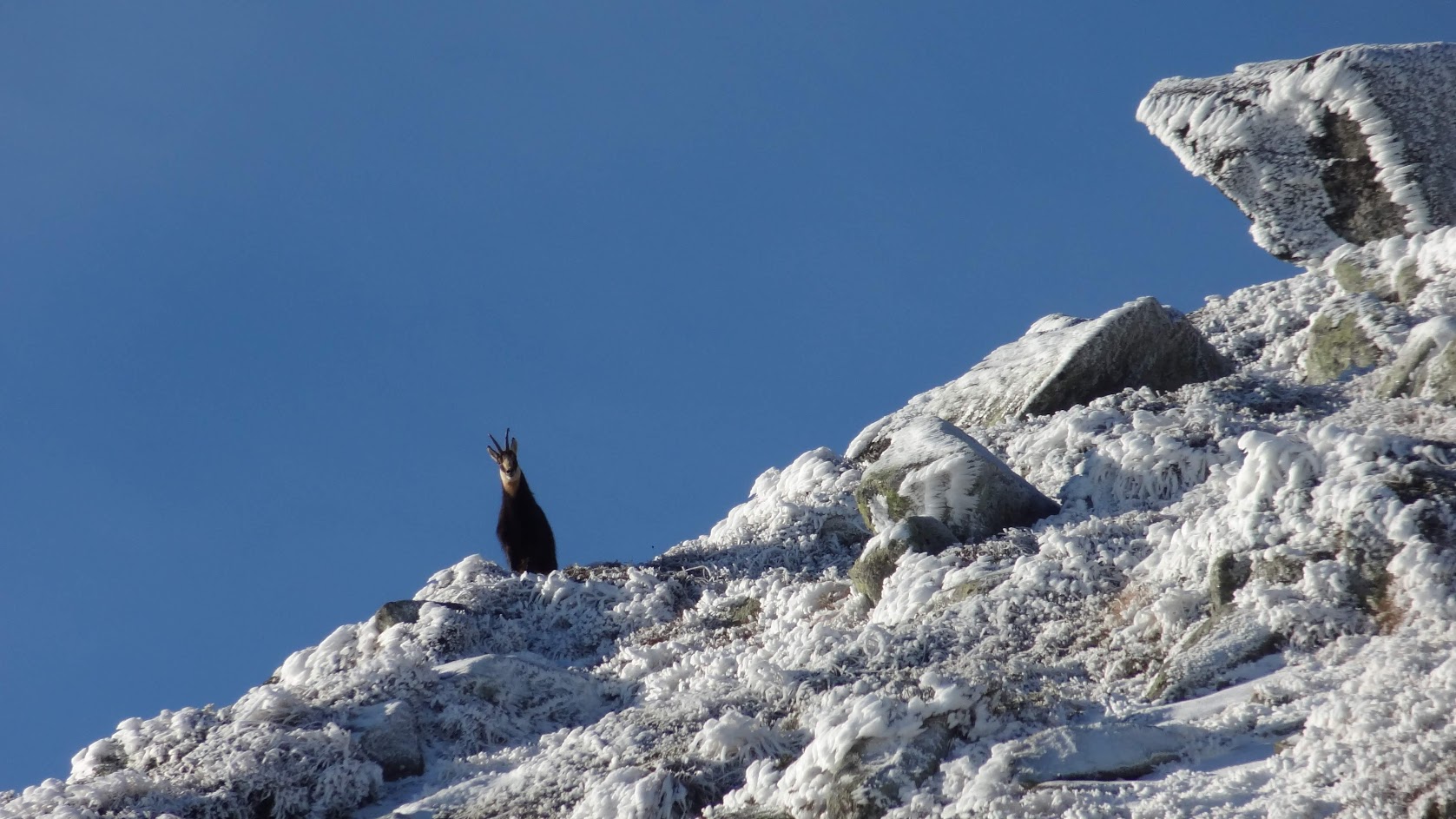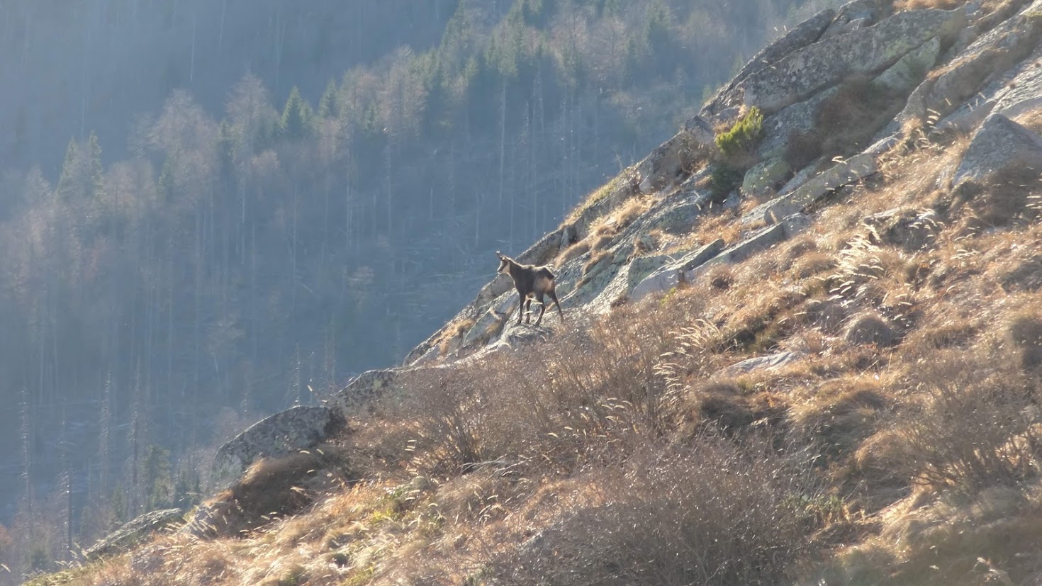 На 13.11.2022 г. се разходих от Алеко до Черни връх през Лале 2. Не съм сигурен дали беше първия сняг за сезона, но за мен беше такъв. От Алеко нагоре имаше тънка снежна покривка, но беше слънчево и тихо. С една дума - превъзходно. Тъкмо си мислех, че този път няма да видя животинки и по едно време над мен една коза беше застанала на един камкък и издаваше странни звуци. Ако трябва да съм честен си мислех, че е някаква птица.