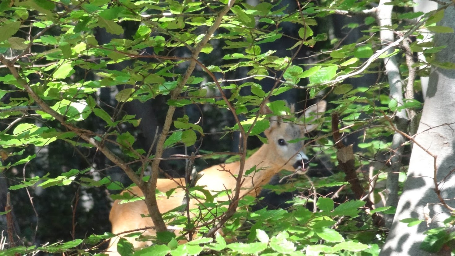 На 16.05.2021 г. вървях по пътеката от Бай Кръстьо към Кикиш и малко преди заслона в гората отляво на пътеката видях сърна. Нямах време да я снимам, защото само след секунда-две побягна нагоре към Комините.