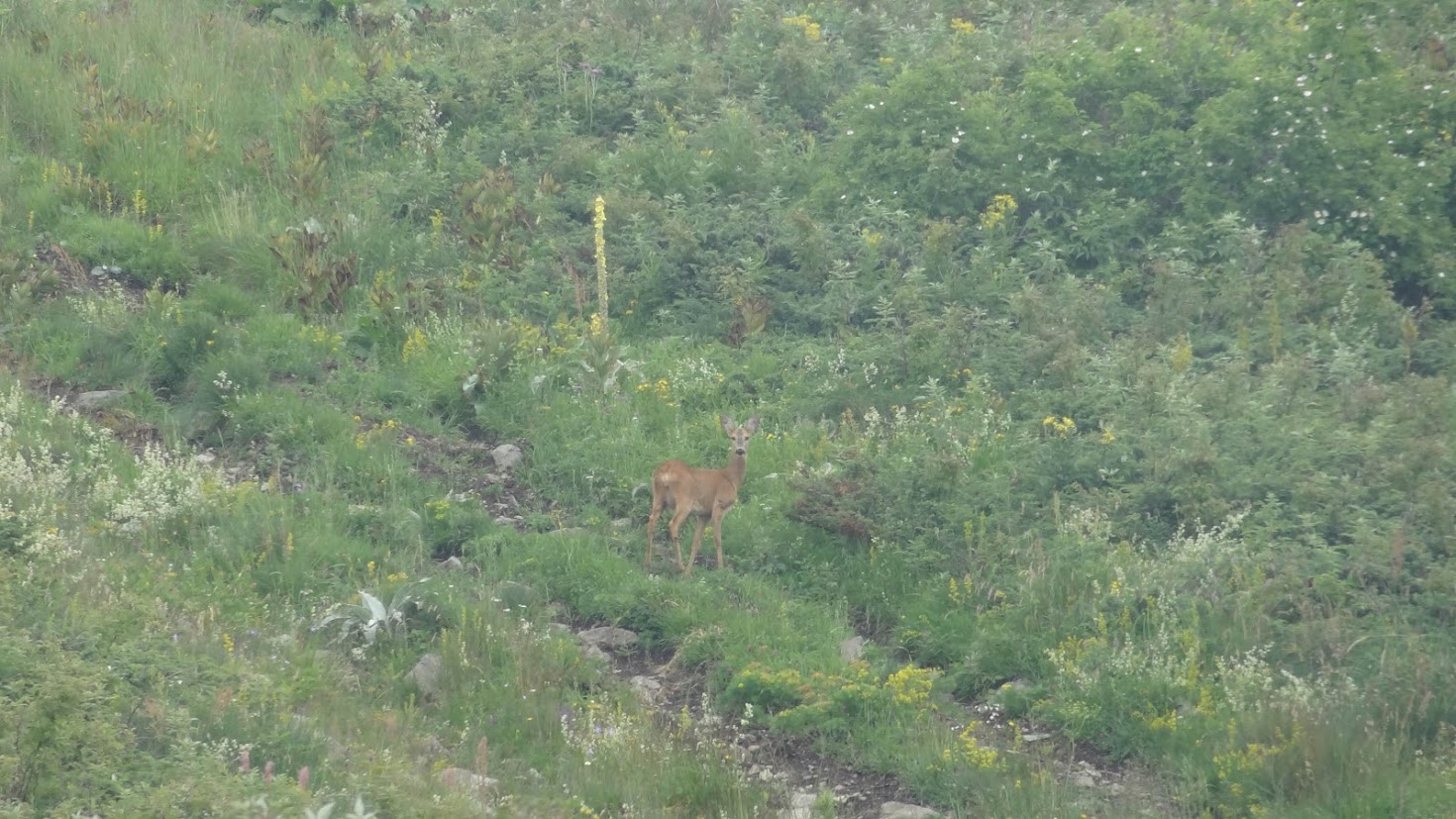На 26.07.2025 г. се качих от с. Железница до х. Физкултурник и минах през Казана към Синята стрела. Малко преди хижата видях тази сърна: