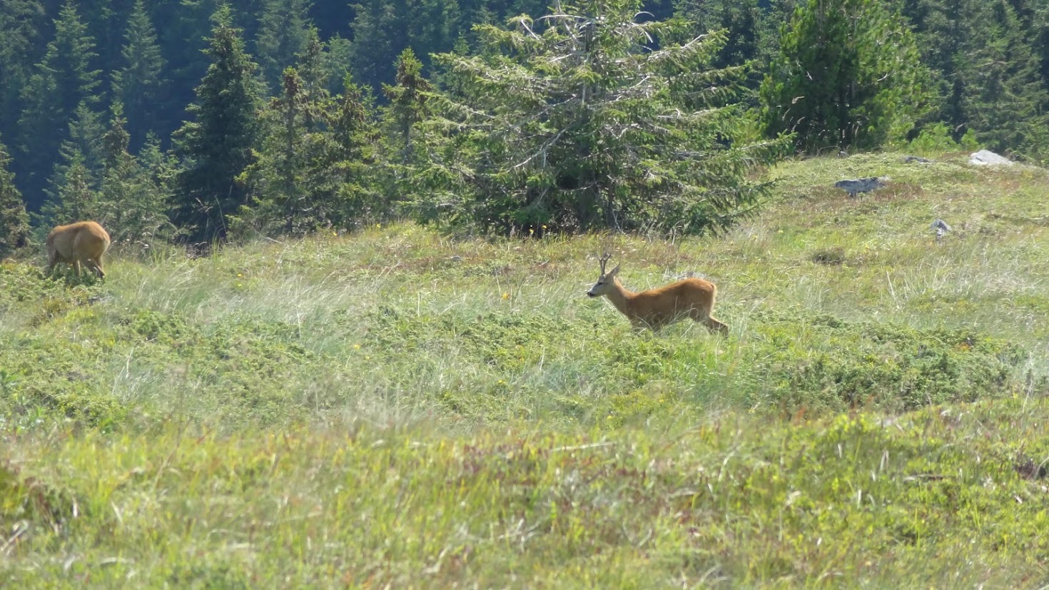 На 15.8.2020 г. реших да опитам да премина през трасето на Red Bull Moreni Challenge, което преминава през морените, които не били морени, при Златните мостове на Витоша. Малко над горния край на трасето започва гориста местност през която преминах за да стигна до пътеката свързваща хижите Бор и Планинарска песен. Неочаквано на около 30-40 метра от мен видях две сърнички, които бързо избягаха надолу между дърветата.