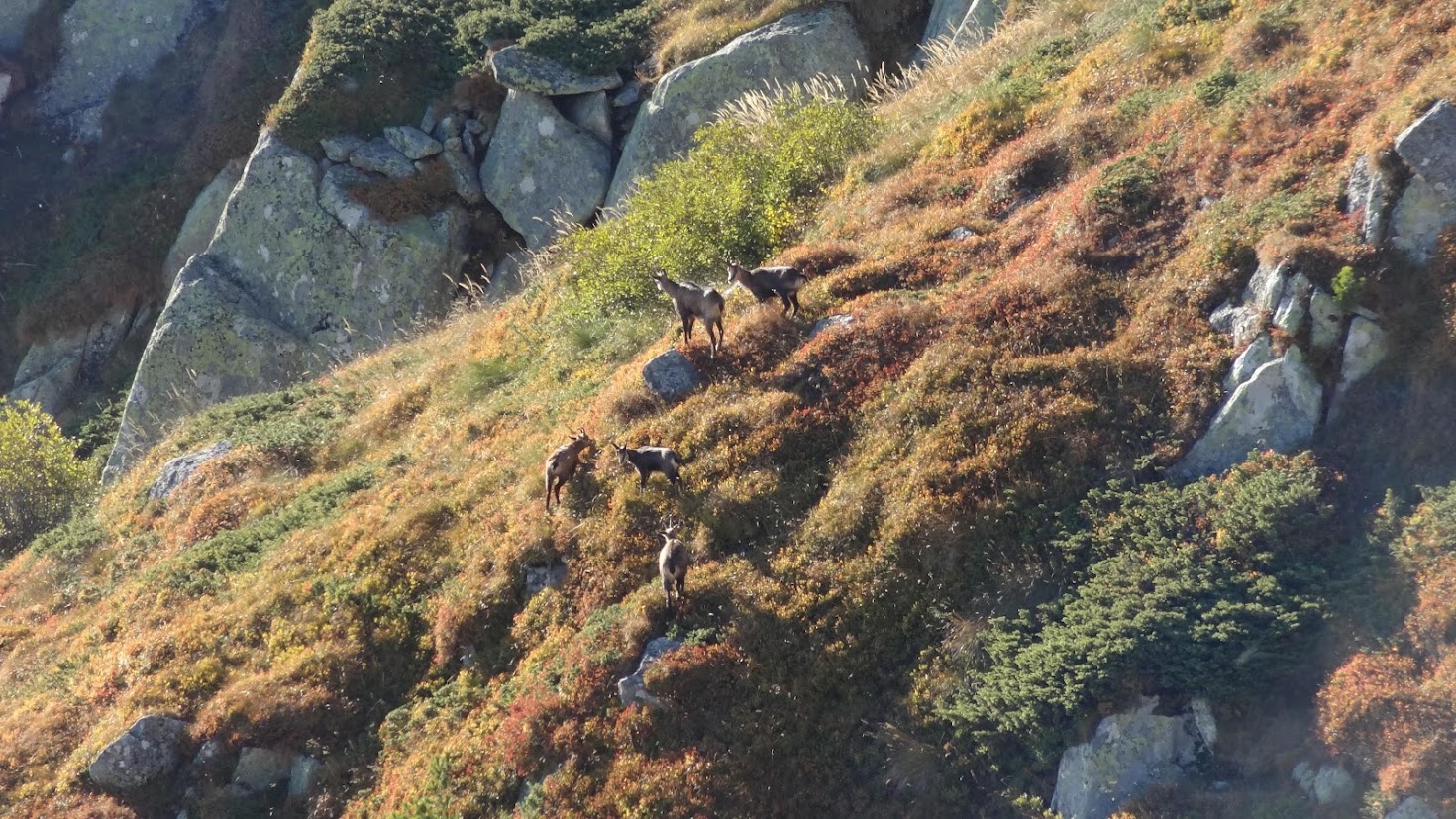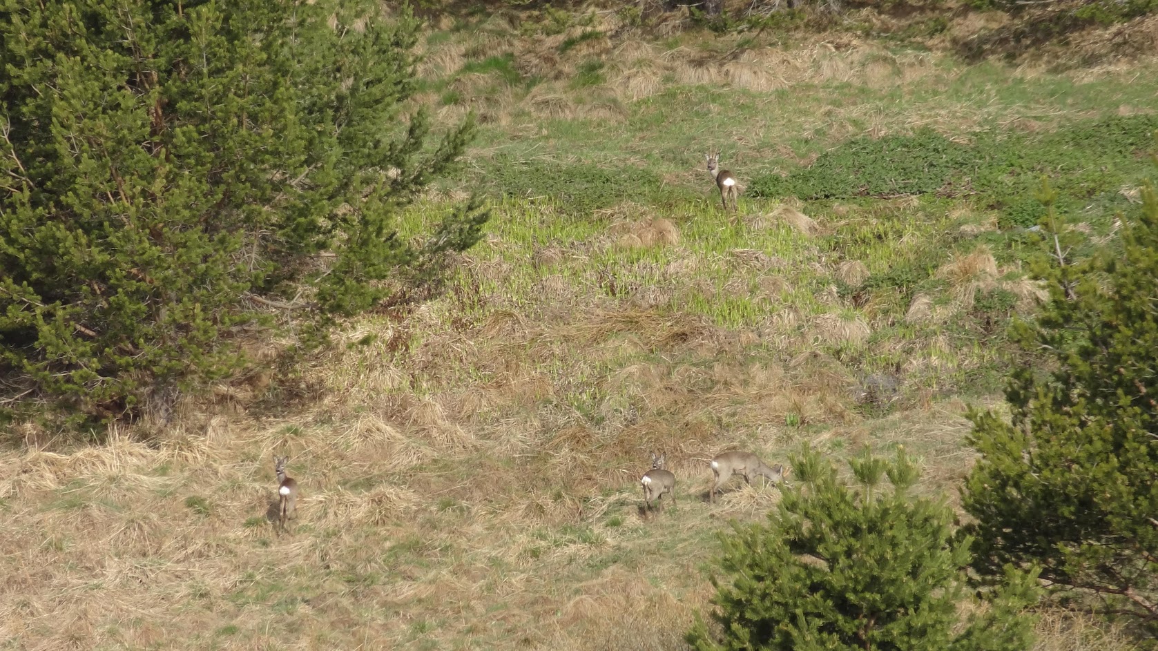 Аз се бях скрил добре зад един клек и успях да ги наблюдавам известно време. Те се преместиха към склона надясно към гората над з. Синята стрела и там успях да ги снимам отново.
