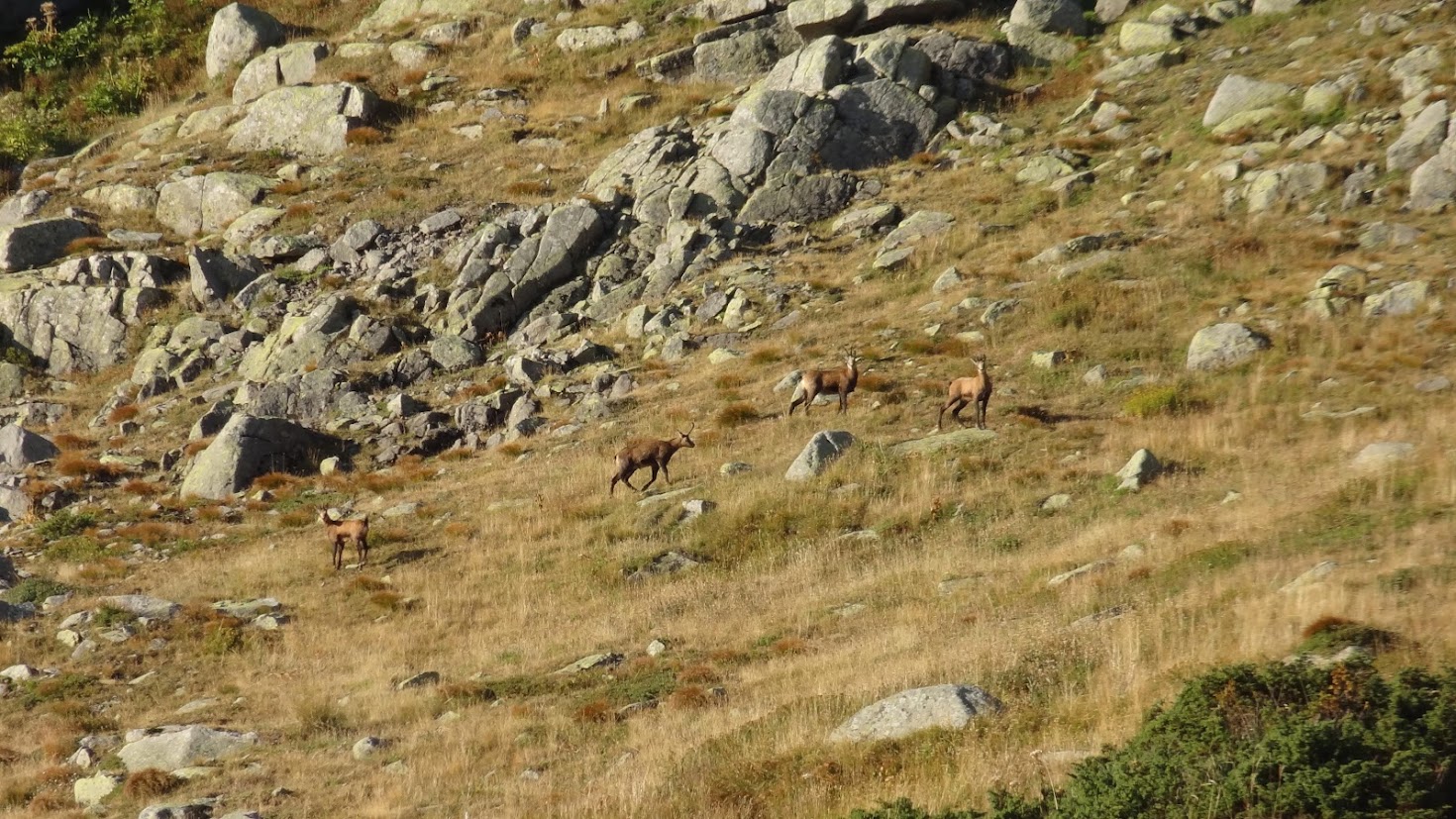 На 24.08.2024 г. се качихме семейно до Черни връх. На слизане минахме през Лале 2 и по скалите под Големия резен видяхме няколко диви кози, които си играеха и се гонеха нагоре-надолу.