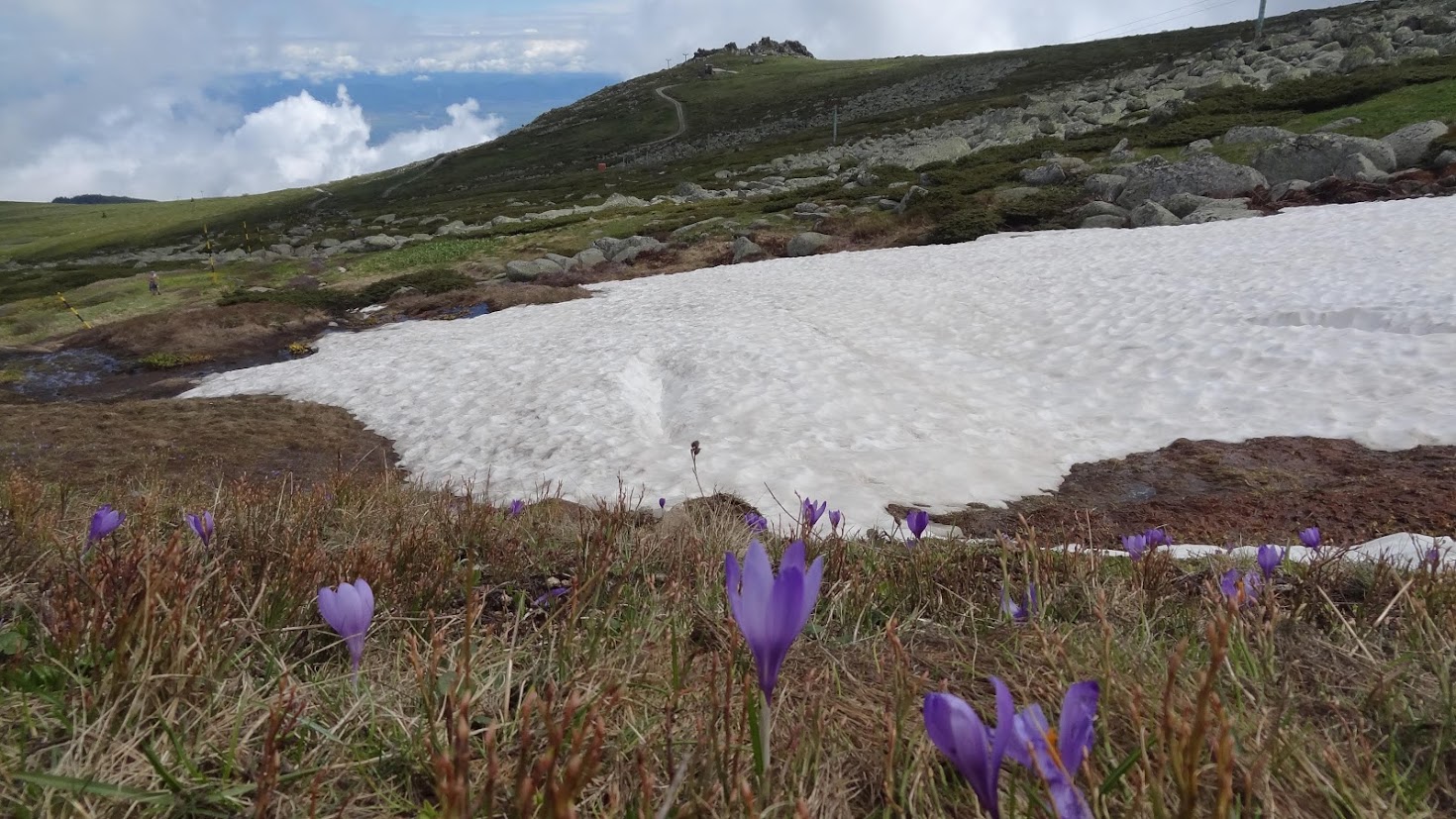 На Черни връх седнахме да изпием по един подсилен чай и да хапнем, за да имаме сили да се спуснем до началната точка - Симеоново. Спускането надолу беше продължително и със спокойно темпо. Краката ми бяха подгизнали и изпитвах дискомфорт. Мислех си, че са се образували мазоли, но за щастие вкъщи видях, че няма поражения. В края на тази зима наваля доста сняг и по най-високите и вдлъбнати места все още имаше доста големи преспи. Минзухарите покрай тях изглеждаха доста ободряващо. Когато човек пропусне да спи една нощ, след това всяко такова на пръв поглед дребно нещо спомага за повдигането на духа.