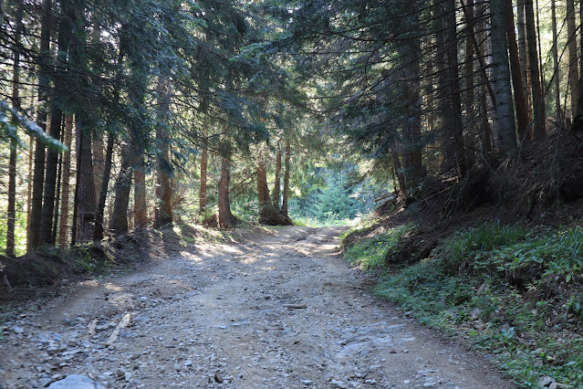 Към 8:30 стартирахме записване на маршрута с часовниците и поехме нагоре по пътя. Вървяхме по коларския път към х. Мечит. Вместо по пътеката, избрахме да вървим само по пътя, защото е по-широк и няма трева, а и е малко по-полегат. Все пак щяхме да изкатерим някъде около 2000 метра денивелация през целия ден.